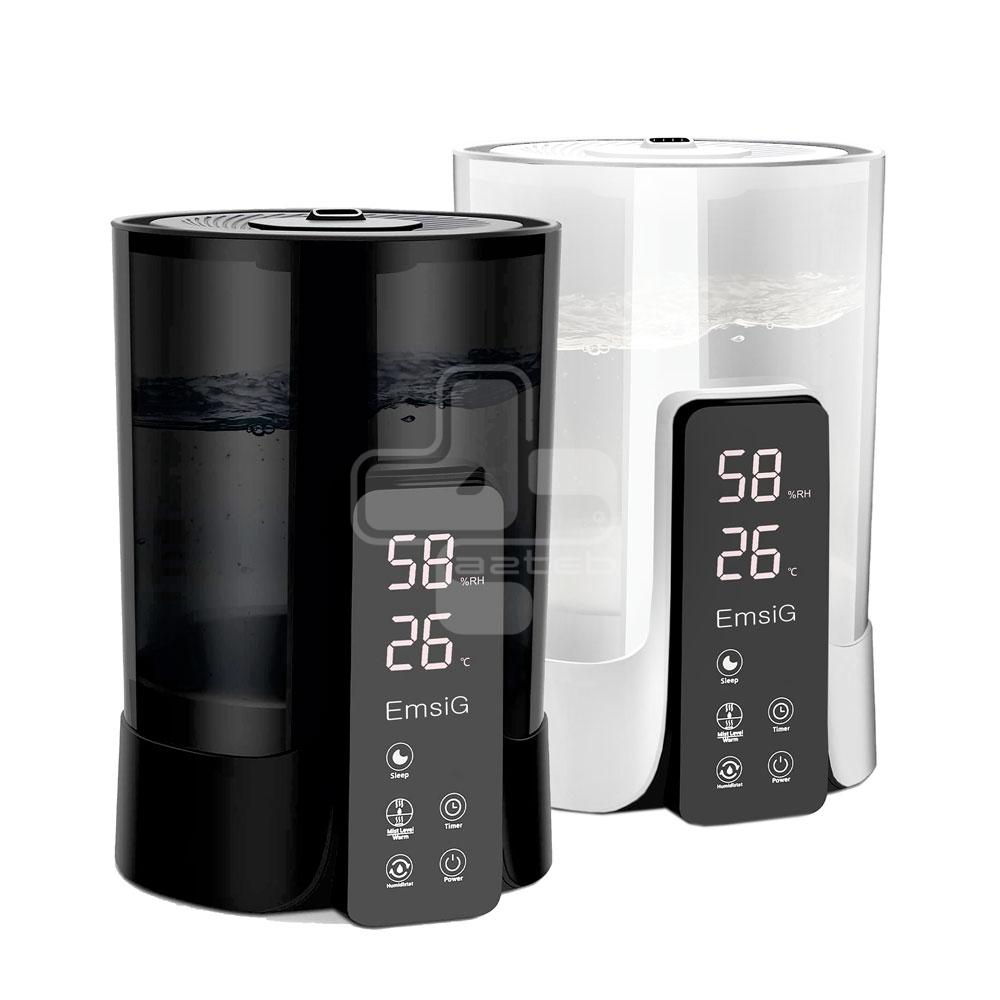 دستگاه بخور سرد اولتراسونیک Emsig دارای سنسور سنجش رطوبت و سنسور دمای محیط است. همچنین این دستگاه بخور از قابلیت زمانسنج پشتیبانی میکند. این دستگاه بخور قابلیت پرشدن مخزن از بالا بدون جداسازی دارد. صفحه کنترل این دستگاه بخور لمسی است.