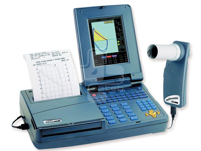 اسپیرومتر از جمله تجهیزات پزشکی است که در حوزه تشخیص و درمان عارضههای ریوی و قلبی مورد استفاده قرار میگیرد. از دستگاه اسپیرومتر جهت اندازهگیری ظرفیت ریه و دیگر پارامترهای تنفسی استفاده میشود. دستگاه اسپیرومتر بیشتر جهت تشخیص آسم و عارضه مزمن انسداد ریوی مورد استفاده قرار میگیرد. با استفاده از دستگاه اسپیرومتر میتوان ظرفیتهای مختلف تنفسی ششها را اندازهگیری کرد. این دستگاه اندازهگیری ظرفیت حیات، ظرفیت دمی، ظرفیت باقی مانده عملکردی و ظرفیت کل ریوی را امکان پذیر میکند. اسپیرومتری ایتالیایی Mir مدل Spirolab 2 مجهز به پرینتر است. این محصول در فروشگاه تجهیزات پزشکی آزطب عرضه میشود.