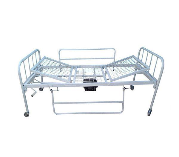 این تخت بیمار از نوع دو شکن است. نسبت به محصول تک شکن این تخت بیمار پیشرفتهتر است و امکانات بیشتری در اختیار کاربران قرار میدهد. شکنهای این تخت در قسمت زیر سر و پا قرار لحاظ شده است. برای راحتی وضعیت بیمار میتوانید با چرخاندن هندل مکانیکی زاویه سر بیمار را تغییر دهید و به سمت بالا بیاورید. همچنین در صورت لزوم میتوانید زاویه پاهای بیمار را نیز تا 30 درجه تغییر داده به سمت بالا ببرید.