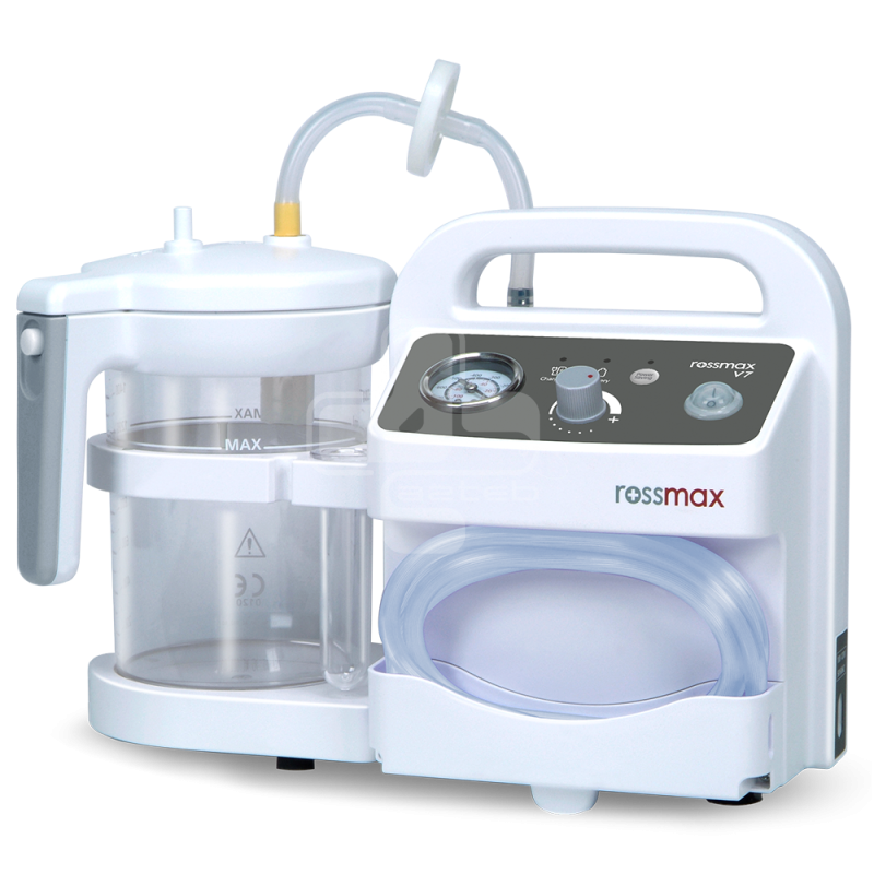 دستگاه ساکشن Rossmax مدل V7 محصول ساکشن و تخلیه مایعات، خون، خونابه، خلط، بزاق و استفراغ از ریه است. این دستگاه در رفع انسداد ریوی و تسهیل تنفس بیمار نقش موثری دارد. دستگاه ساکشن V7 مجهز به مخزن با ظرفیت 1.4 لیتر است. این محصول ظرفیت 30 تا 60 لیتر ساکشن ترشحات در هر ساعت را دارد.